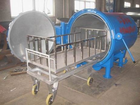 真空定型快速蒸箱(以下简称“蒸箱”)适用于以天然纤维、化学纤维为原料的纺织行业和单位,其主要用途是将具备织造条件的连续的丝线在合并、加捻后进行定 型,即用于化纤、真丝、羊绒、纱线、窗帘、起皱布、印花布等的定型。即在一定压力温度下稳定捻度,获得均衡的不扭缩丝线,便于后道工序的加工和提高产品质 量。对于强捻度的纱线,采用“蒸箱”定型显得更为重要。该“蒸箱”的使用特点是:适用范围广泛,既能湿热定型(将饱和蒸汽直接通入筒体内),又能干热定型(将饱和蒸汽通入夹套内,由筒体内壁散热)。大门 开关轻便,物体装卸迅速,密封性能好,热定型效率高,使用安全可靠。定型后的产品诸如强力伸长度等物理机械性能不受影响,保证了产品的质量。